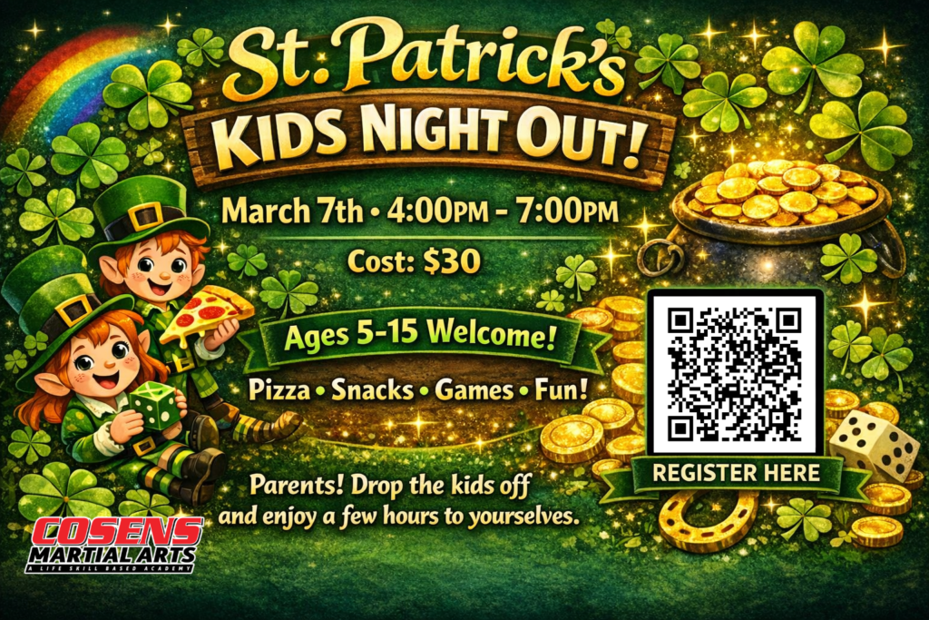 St. Patrick’s Kids Night Out is almost here, and it’s the perfect opportunity for parents to enjoy a few hours to themselves while the kids have an unforgettable evening of fun. On March 7th from 4:00 to 7:00 PM, we’ll be hosting a high-energy event filled with pizza, games, and exciting activities designed to keep everyone smiling from start to finish.